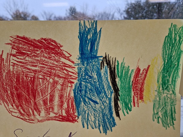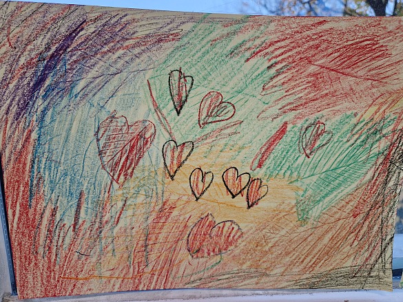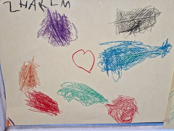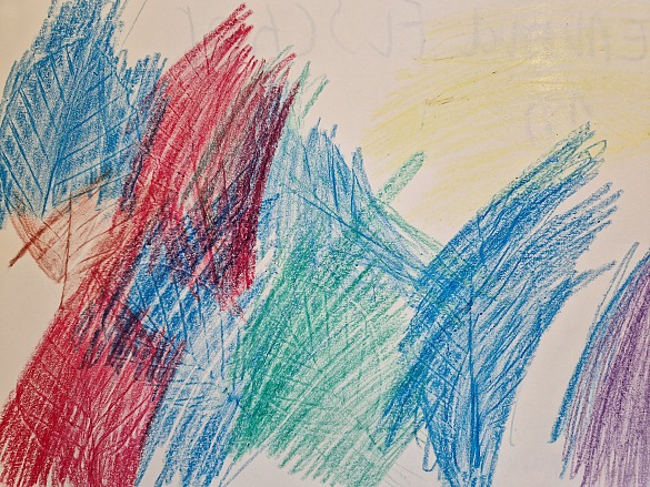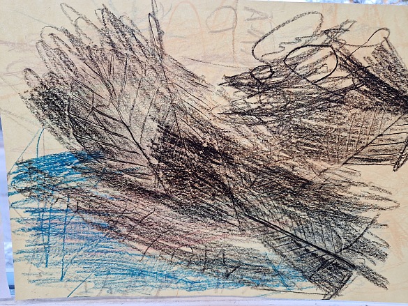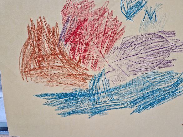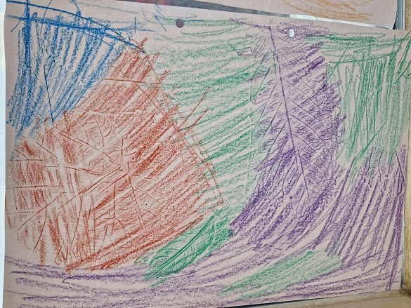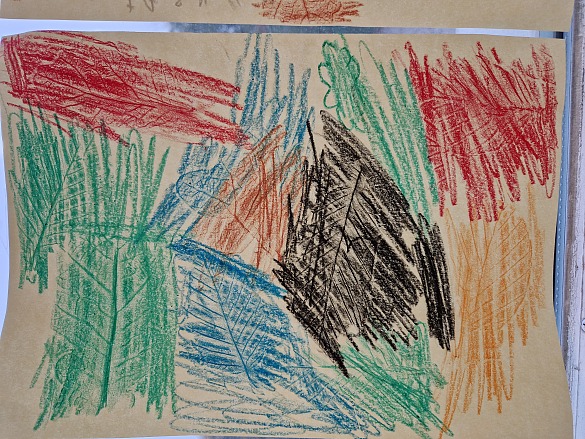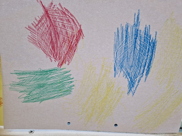Danach haben wir seitlich mit Wachsmalstiften das Papier angemalt.
