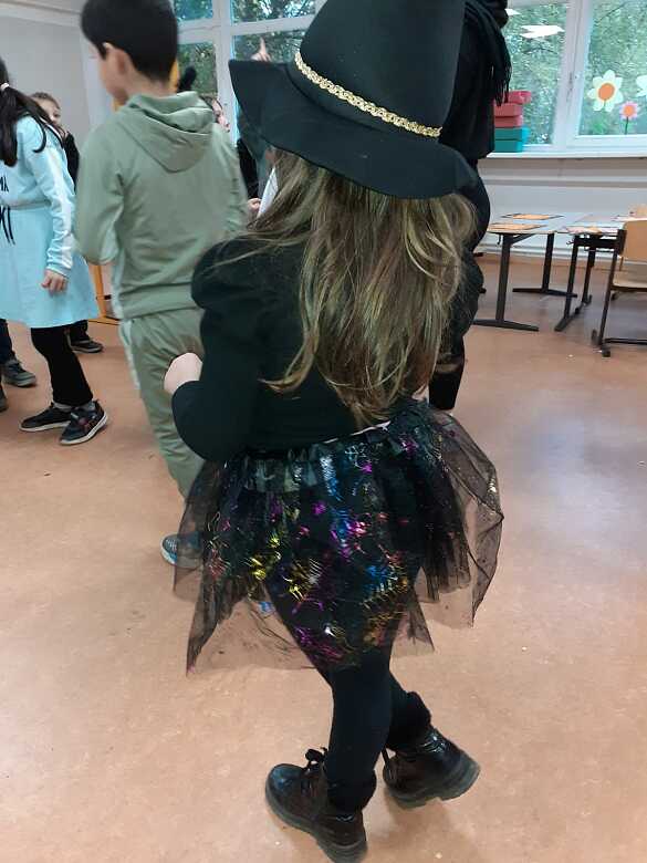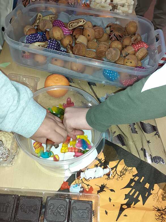 Die Kinder konnten sich verkleiden, schminken lassen und bei Spielen und Tanz mitmachen. Mit einem gruselig-leckeren Buffet, zu dem die Eltern beigetragen haben, hatten wir einen tollen Nachmittag voller Spaß und schauriger Stimmung.